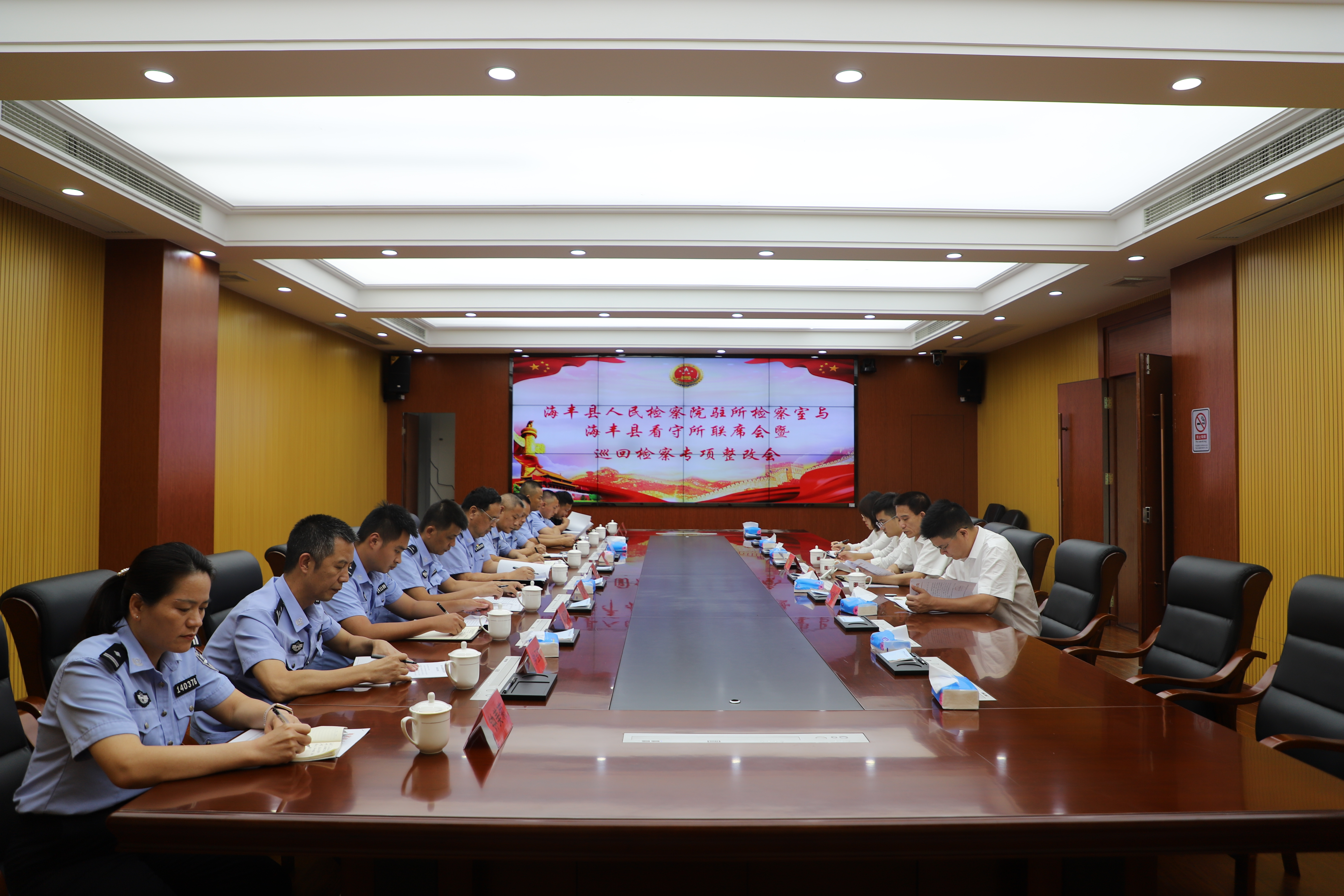 2023年6月30日下午,第三检察部(驻所检察室)与县看守所在本院三楼会议室召开联席会议暨巡回检察整改专项会。主管副检察长陈文成、第三检察部主任林钦赐、干警高源培和县看守所徐宣隆、教导员施培双、副所长黎伟文、叶海滨及其他民警参会。